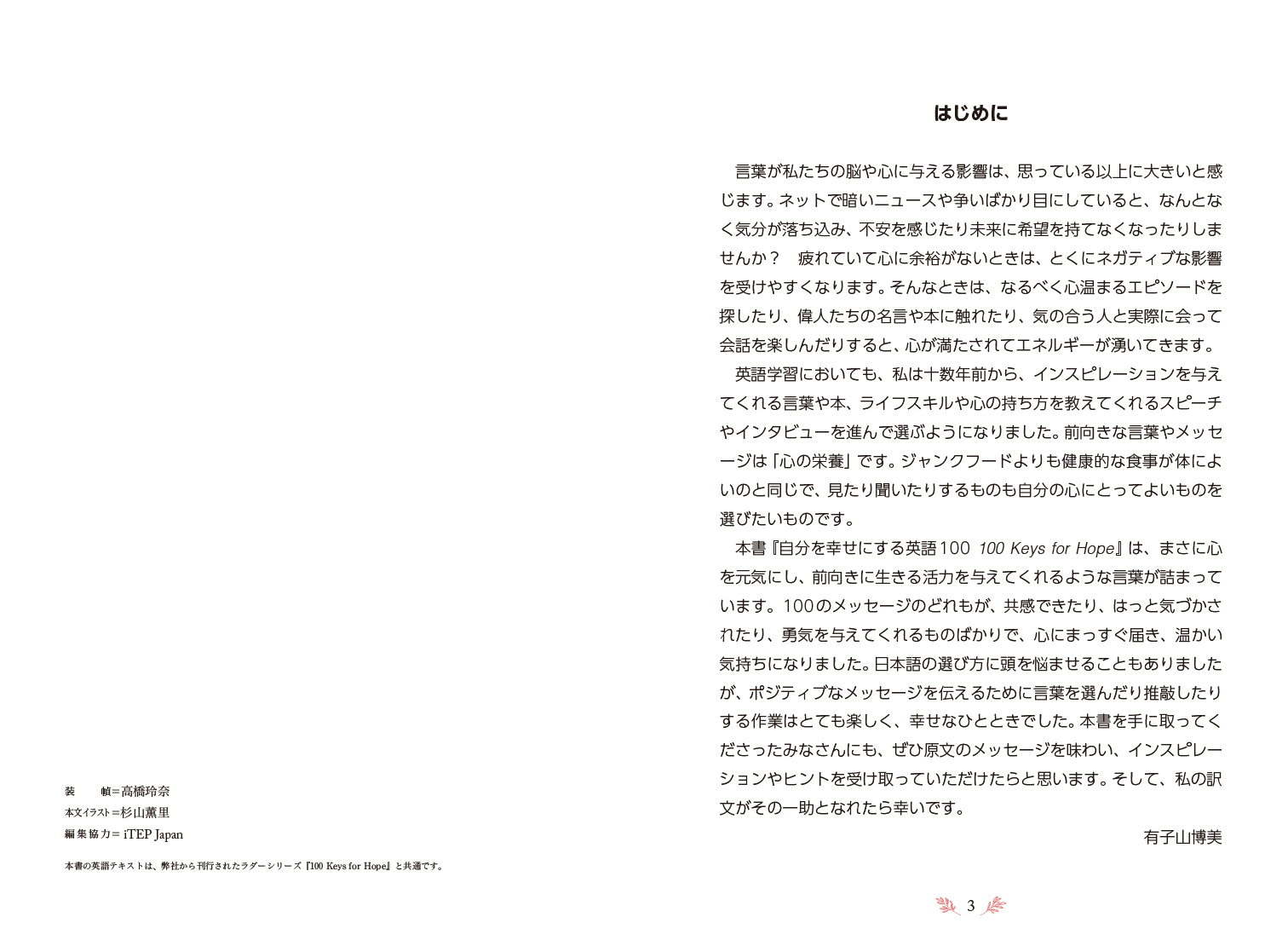 本書は、より幸せで楽しい未来を作るためのアイデアやヒントを与えてくれるメッセージを、シンプルな英語と日本語の対訳で味わいながら英語力とポジティブ思考を手に入れる学習書です!
