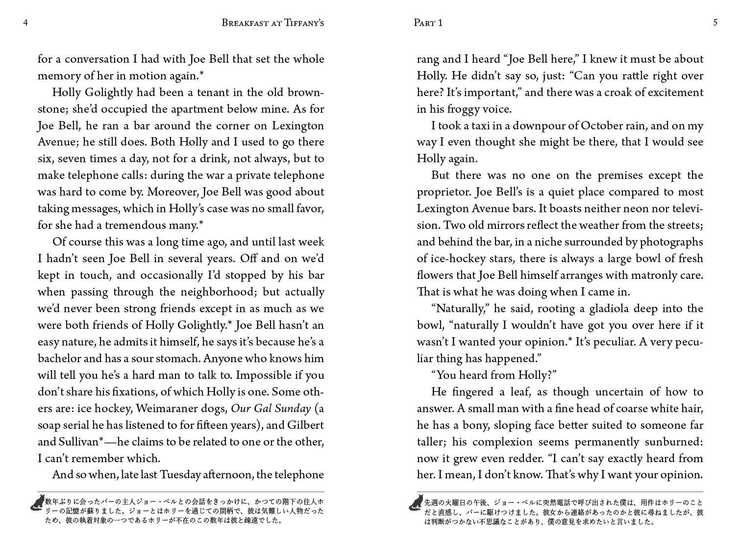 アメリカの作家トルーマン・カポーティによる中編小説。ニューヨークを舞台に、美しく魅力的で自由奔放に生きる女性ホリーを描き、著者の名声を不動のものにした名作。オードリー・ヘプバーン主演で映画化された。